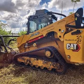 Bush Hogging is what you see workers doing along side roads with farm tractors or in pastures. A standard bushhog being pulled by a tractor cannot clear an overgrown field. It can maintain the field, but not clear it. The reason is because of how the bushhog is used. A farm tractor pulling a bushhog has to drive through tall grass before the bushhog cuts it. This can lead to damage when the tractor hits debris or a stump. ShadowCat’s machine employs a front mounted Forestry Mulcher. This allows the mulcher to cut all brush and tall grass before the machine runs into a hazard. Furthermore, the armor plating on a track loader, Caterpillar 275XE Compact Track Loader Land Management machine, protects it from damage. After ShadowCat bush hogs your property you can use a farm tractor to maintain it or call ShadowCat back for a maintenance cut once a year.